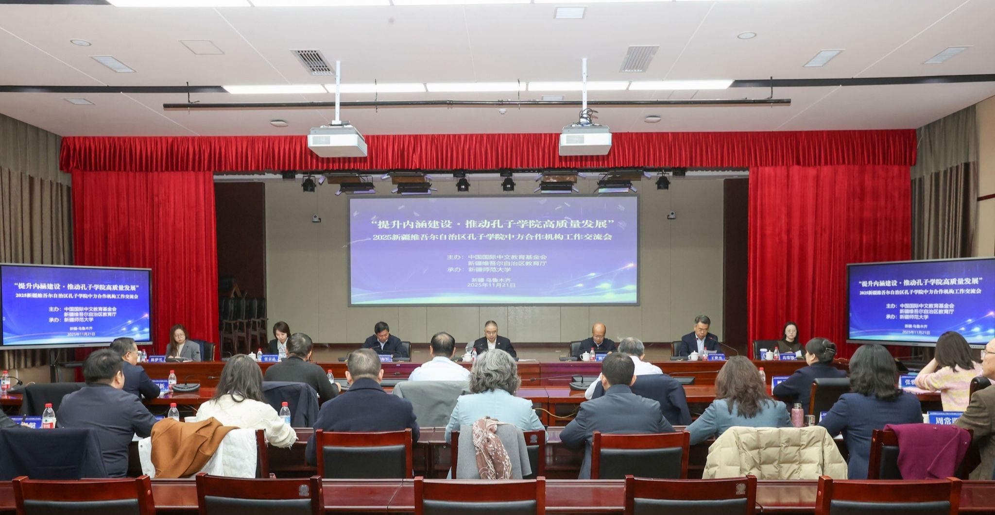 受中国国际中文教育基金会与新疆维吾尔自治区教育厅共同委托,11月21日,我校成功举办2025年新疆维吾尔自治区孔子学院中方合作机构工作交流会。