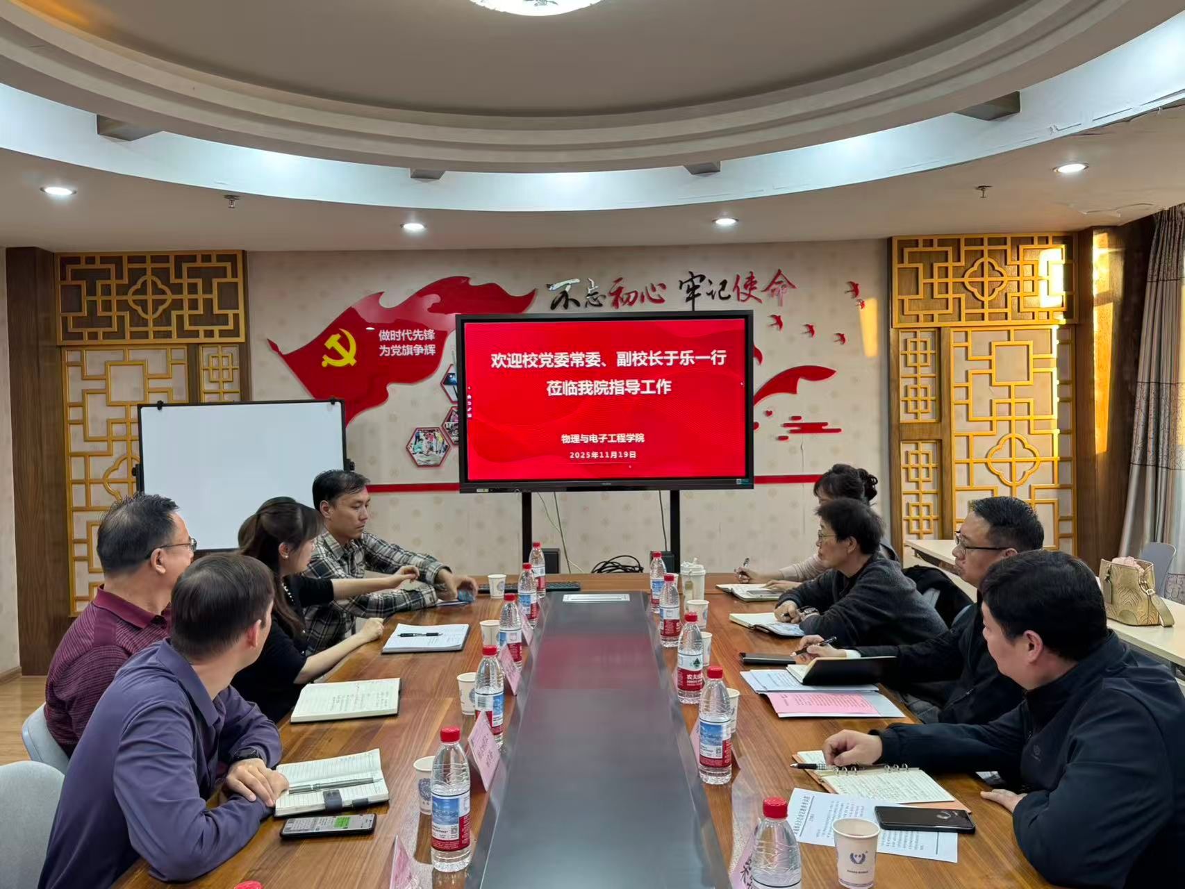 11月19日,校党委常委、副校长于乐一行先后赴我校马克思主义学院、教育科学学院、物理与电子工程学院开展调研座谈,深入了解学院发展现状、需求及规划,协调推动解决实际问题,助力学科建设与人才培养提质增效。