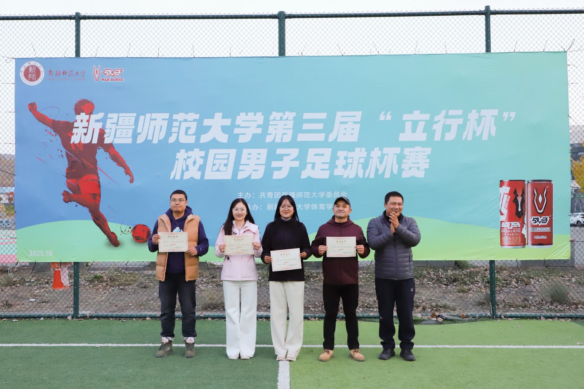 秋阳洒金,绿茵激荡。10月29日,我校第三届“立行杯”校园男子足球赛决赛暨颁奖典礼在温泉校区五人制足球场顺利举行。校党委书记蒋海军,校党委副书记刘俊,校党委常委、副校长、新疆天山职业技术大学党委书记关明参加活动,相关职能部门领导、各学院分管领导、学院团委书记、参赛运动员以及学生代表500余人现场观赛。
