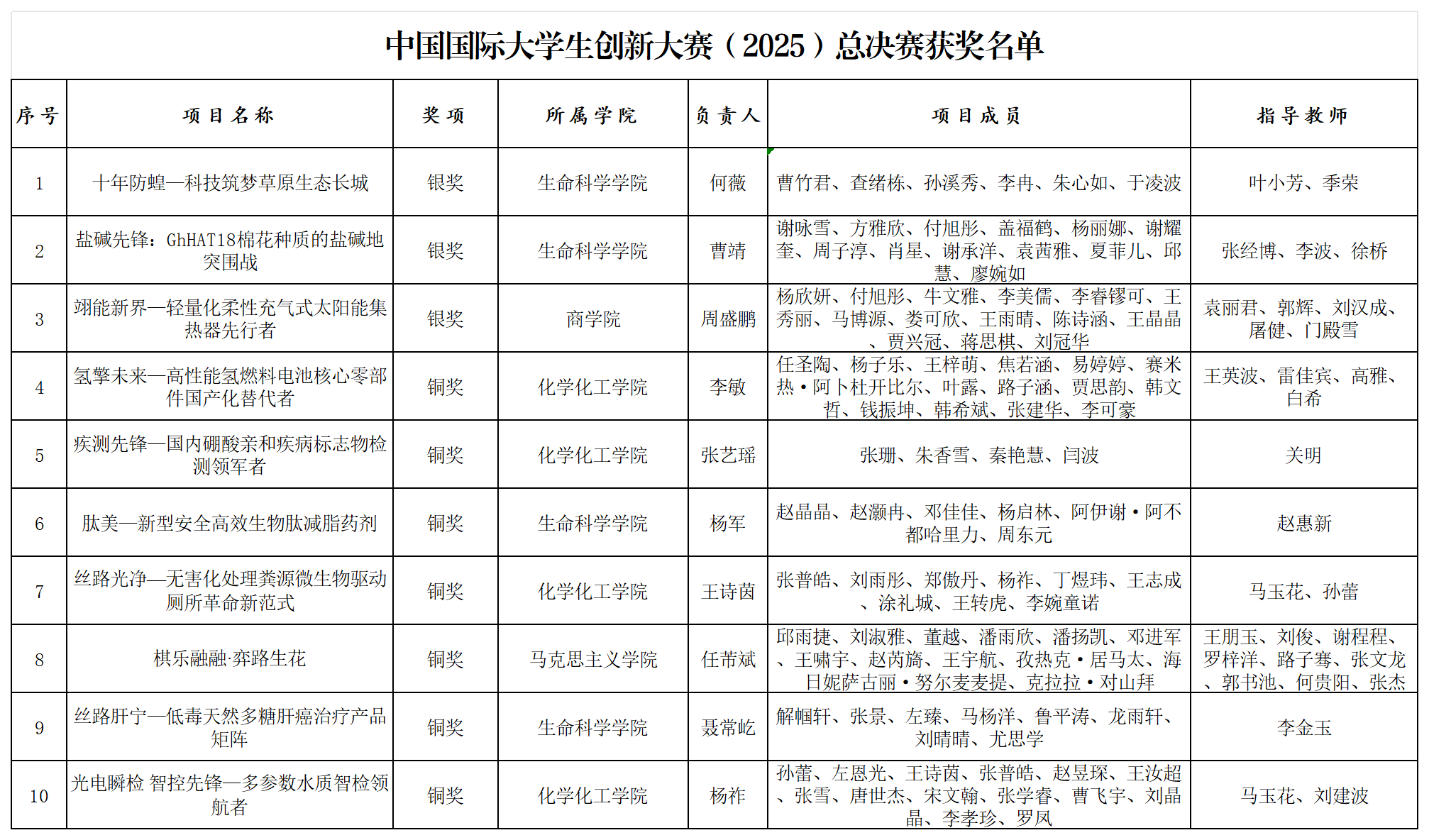 近日,中国国际大学生创新大赛(2025)全国总决赛在郑州大学圆满落幕。我校共荣获3项银奖、7项铜奖,银奖数量实现历史性突破,创学校参赛以来最好成绩。