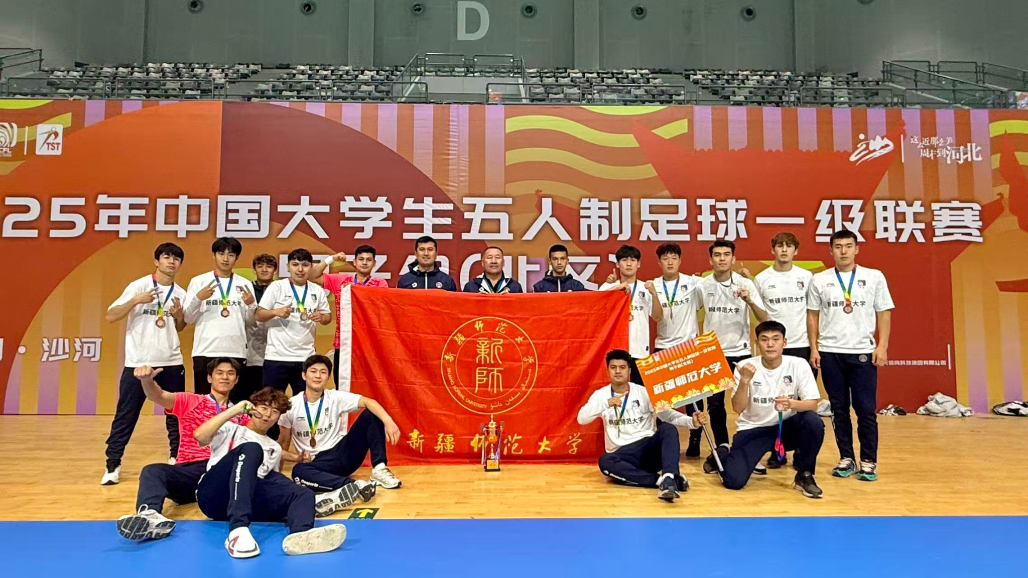 10月22日至29日,2025年中国大学生五人制足球一级联赛在河北邢台举行。本次联赛由中国学生体育联合会主办,中国学生体育联合会大学生足球分会执行。我校五人制足球队在本次联赛北区赛获得季军。我校体育学院教师得勒木拉提·吾拉孜作为校代表队主教练获评为“优秀教练员”。