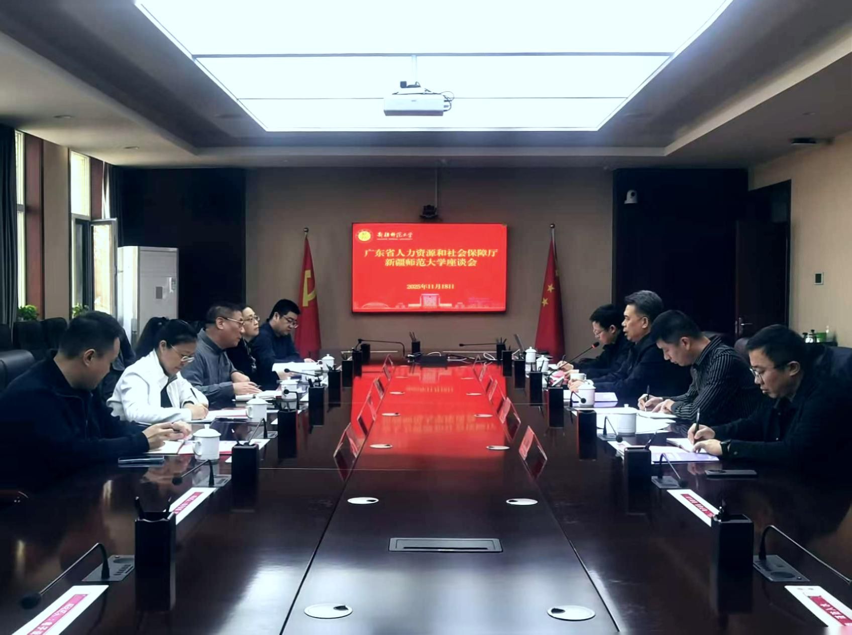 座谈会上,学校招生就业处副处长王达就我校新疆籍毕业生基本情况、2025届毕业生就业情况以及2026届毕业生专业情况进行了介绍,党委组织部组织科科长杜伟就我校学生党员发展情况进行了介绍,为今后广东省相关单位招聘我校毕业生工作奠定了坚实基础。人事处副处长张安新详细介绍了我校2024年完成的第二轮岗位设置与全员聘用工作的典型经验和做法,双方就事业单位岗位设置与聘用等人事制度改革工作进行了深入交流和学习。