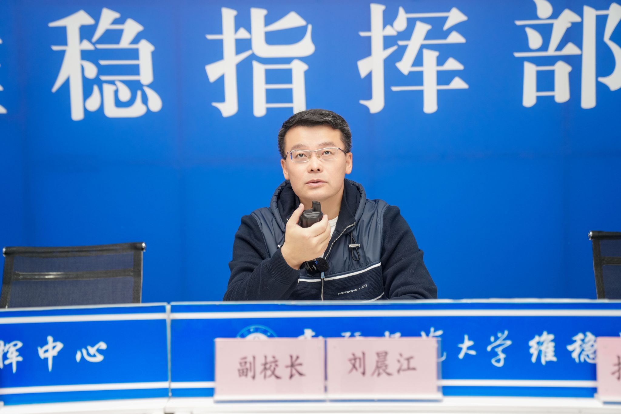校党委常委、副校长刘晨江下达演练指令