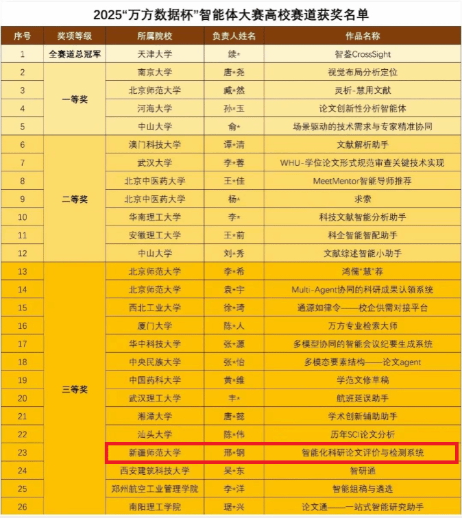 2025“万方数据杯”智能体大赛高校赛道获奖名单