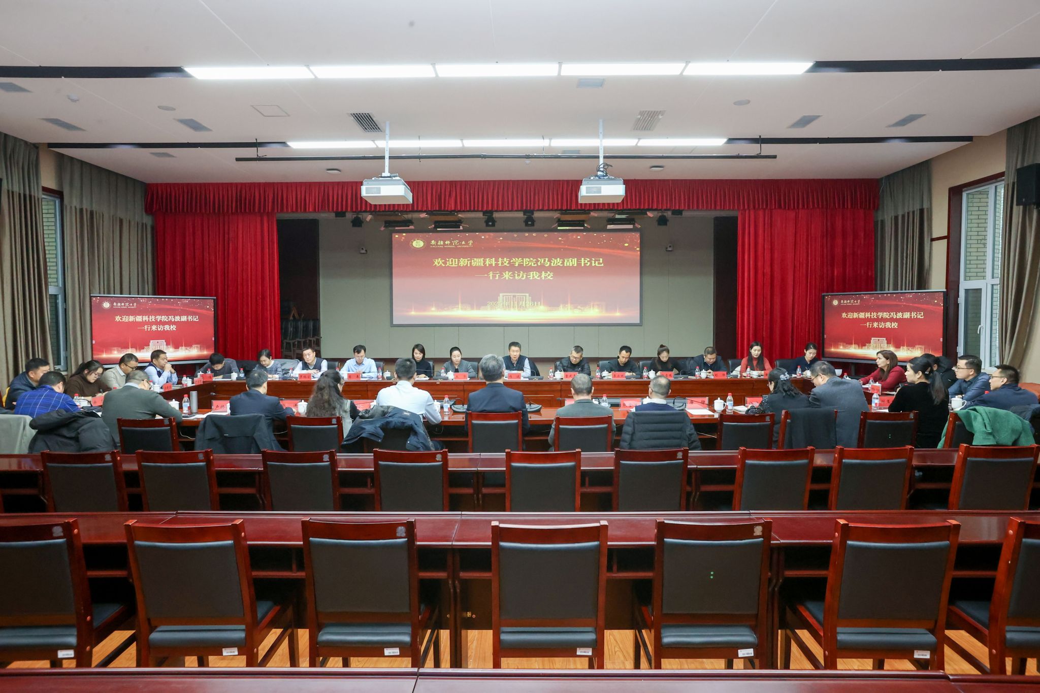 11月26日下午,新疆科技学院党委副书记冯波一行来我校调研交流。校党委常委、副校长王世杰出席座谈会,校党委常委、纪委书记蒋方珍参加相关参观活动。