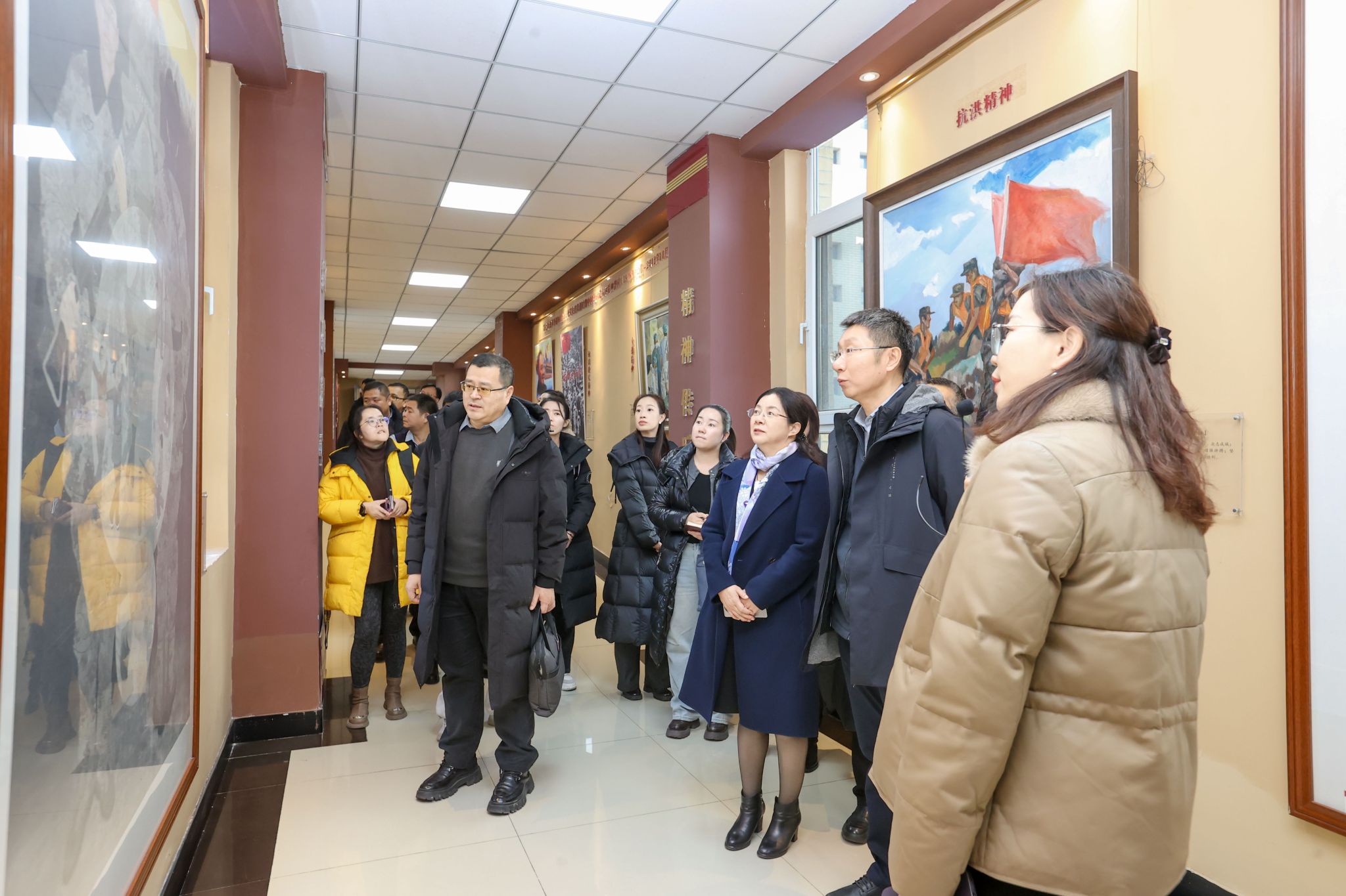 座谈前,蒋方珍与冯波一行先后参观了我校铸牢中华民族共同体意识教育(美育浸润)实践基地、大学生活动中心与马克思主义学院。