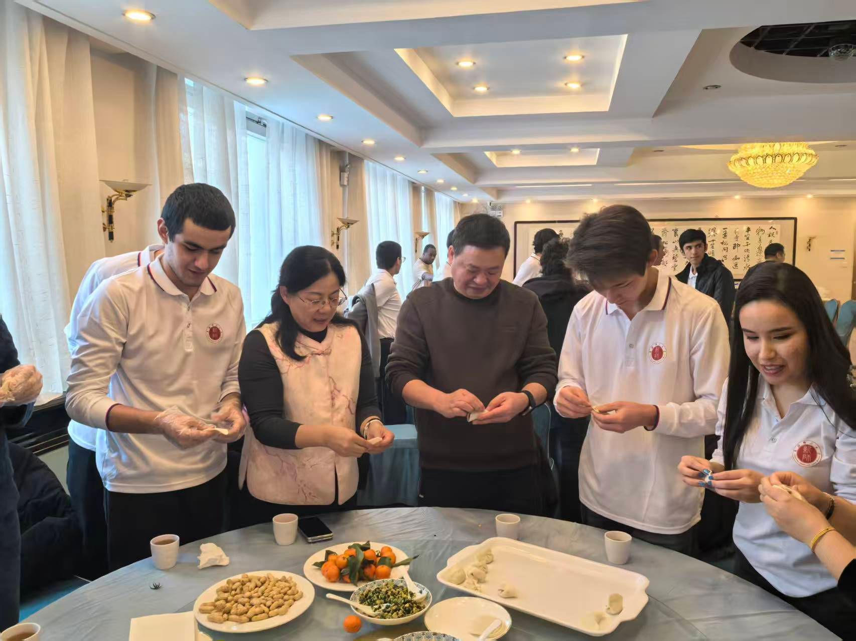 新春来临之际,2月14日下午,我校在昆仑校区学术交流中心举办2026年寒假留校留学生迎新春文化体验活动。校党委书记蒋海军,校党委常委、纪委书记蒋方珍出席活动,看望慰问假期留校的来华留学生,并与同学们一同参加迎新春包饺子文化体验活动。