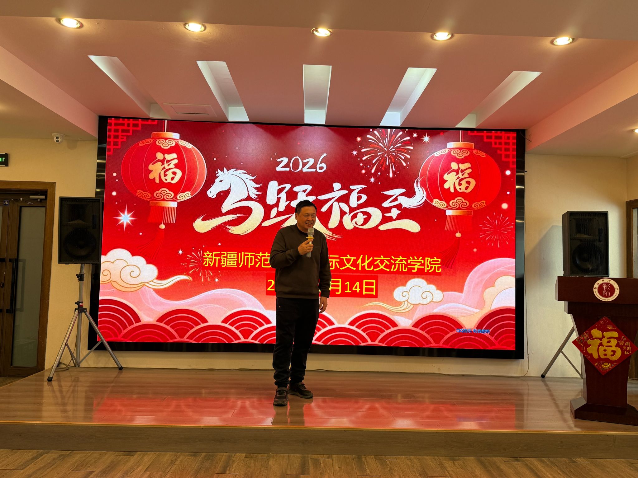 活动中,蒋海军向全体留校留学生致以新春祝福。他表示,春节是中华民族最为重要的传统节日,希望留学生们在参与春节文化活动的过程中,深入了解中华文化内涵,积极做中外文化交流的友好使者。他祝愿大家在新的一年里身体健康、学业进步、马到成功。
