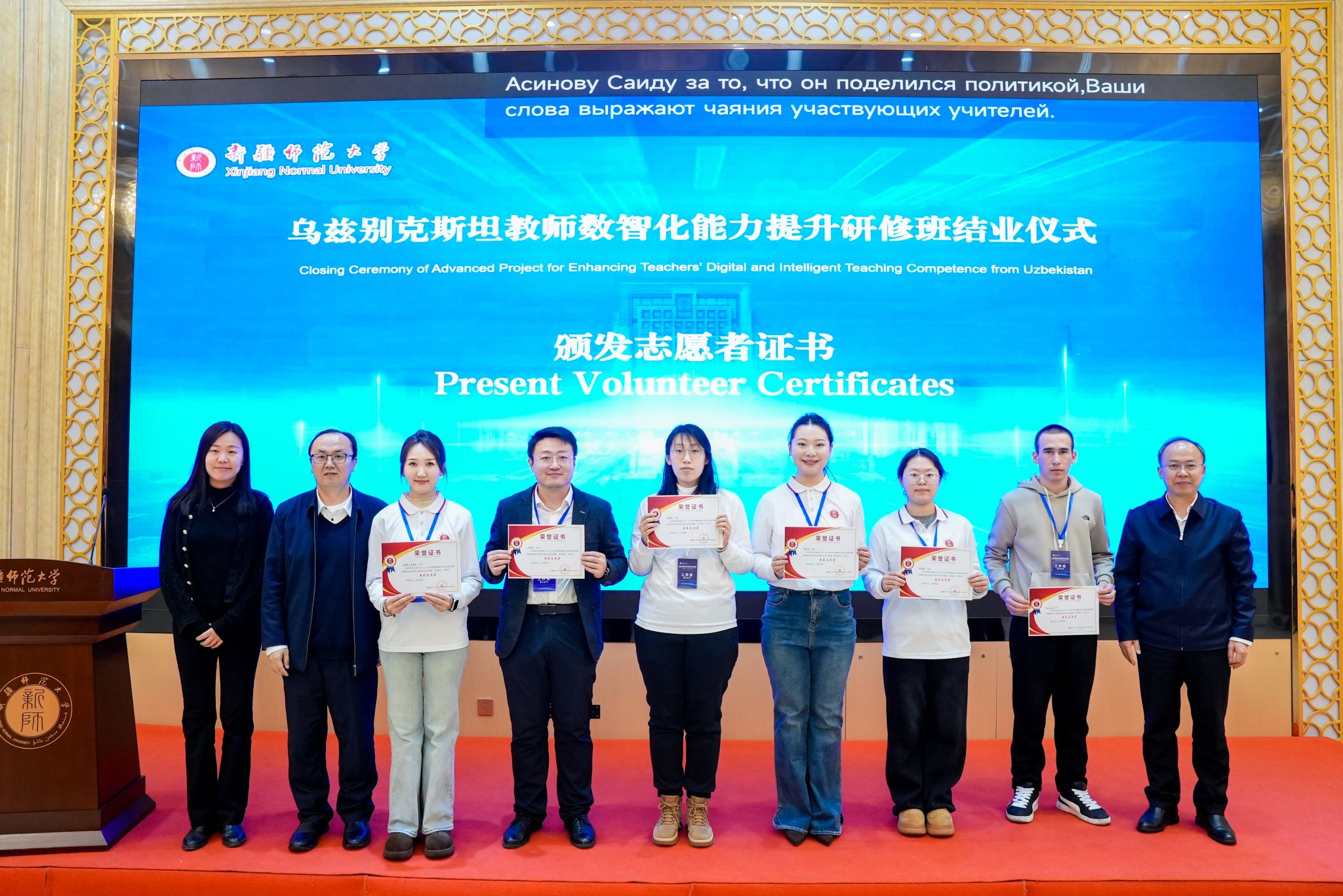 许高勇代表自治区教育厅向研修班学员顺利结业表示热烈的祝贺。他指出,本次研修班是落实中乌两国教育部长共识的具体行动,是助力乌兹别克斯坦教师提升数智化教学能力的有益实践。自治区教育厅愿以这次研修班成功举办为新的起点,以中国—中亚教育交流合作中心、教育部新疆高等研究院、全球教师发展学院中亚学院为平台,全面深化与乌兹别克斯坦地方间教育交流合作,与乌方共建共享数字技术赋能教育变革、助推教师队伍建设的新范式新路径,在教师教育、数字教育等领域推进面向未来的高水平合作,助力构建更加紧密的中国—中亚命运共同体。