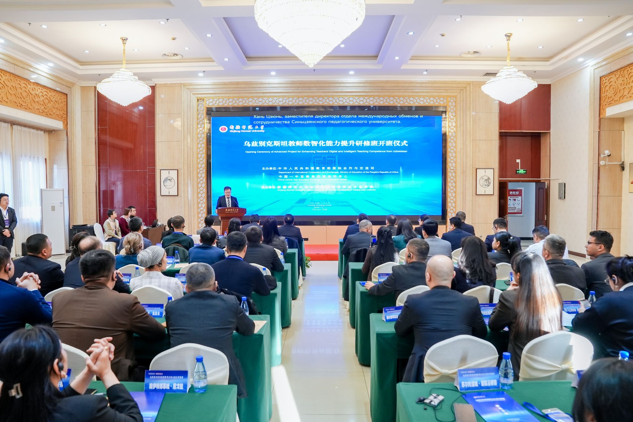 2月2日上午,由教育部国际合作与交流司、中国—中亚教育交流合作中心主办,新疆师范大学全球教师发展学院中亚学院承办的“乌兹别克斯坦教师数智化能力提升研修项目”开班仪式在我校温泉校区学术交流中心举行。教育部副部长任友群视频连线参加,自治区人民政府副总督学何庆,校党委副书记、校长艾尼娃尔·艾克木,中国—中亚教育交流合作中心秘书处处长冯锰,以及来自乌兹别克斯坦的近50名教育工作者出席仪式。