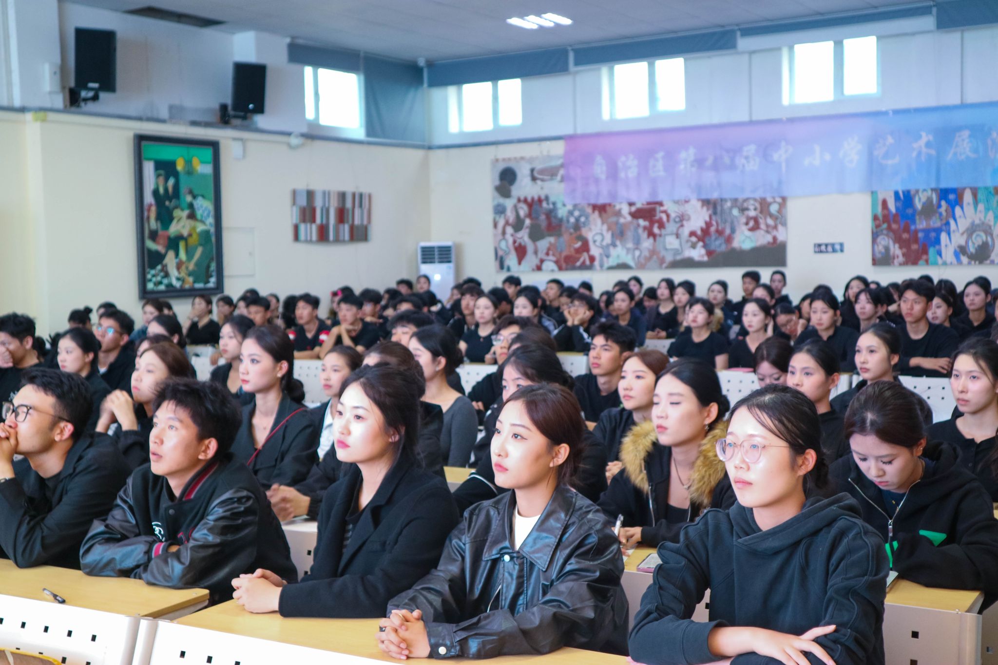 美术学院党委副书记、院长李勇教授向同学们介绍了学院在学科发展、学术研究、职业发展等方面的基本情况和未来发展方向。他表示,航空服务艺术与管理专业作为学院开院办学的首个跨学科专业,融合了艺术、管理、航空服务等多个学科领域的知识与技能。学院将充分发挥艺术教育优势,通过国家级课程思政示范教学团队、一流本科课程等优质资源,助力学生成长为“立足新疆、服务西北、辐射全国”的航空服务人才。