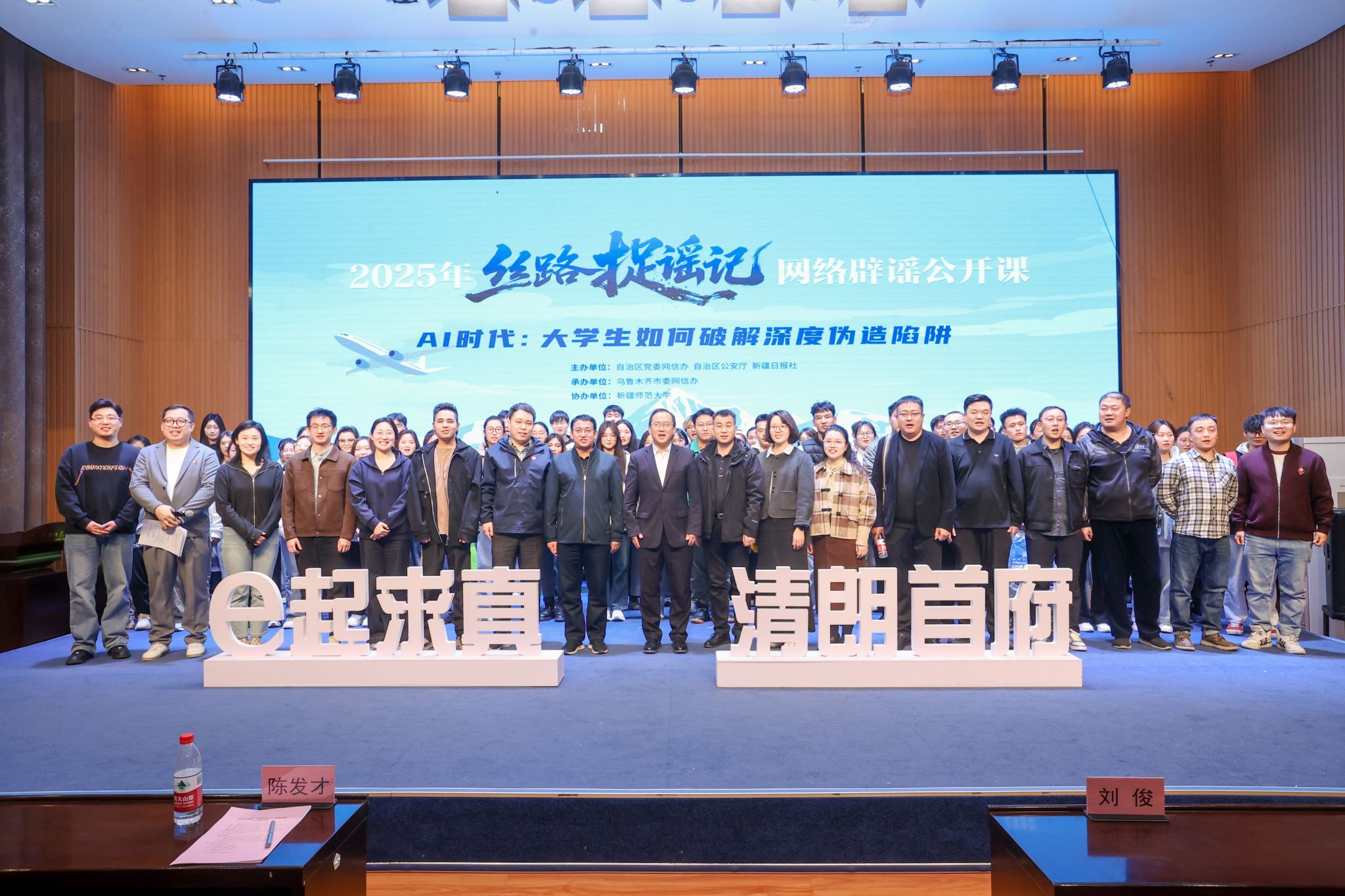 自治区党委网信办举报中心负责人陈发才在致辞中表示,在AI技术高速发展背景下,深度伪造已成为网络谣言新形态,青年大学生作为网络活跃群体,既是谣言易受影响对象,更是抵制谣言、传播真相的重要力量。他强调,本次公开课落地新疆师范大学,正是希望以高校为阵地,推动网络辟谣知识走进青年群体,筑牢校园网络谣言“防火墙”。