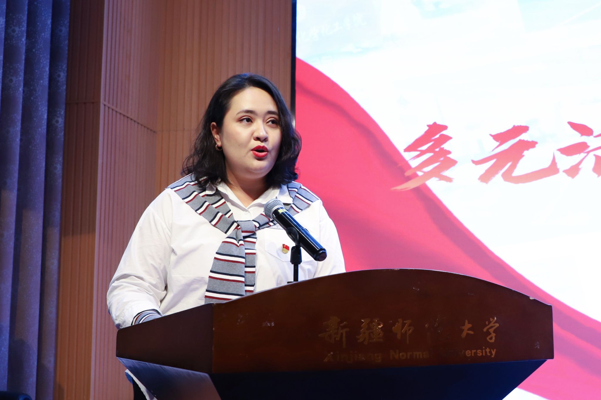 优秀指导教师代表化学化工学院团委书记阿丽菲热·阿布来提作分享