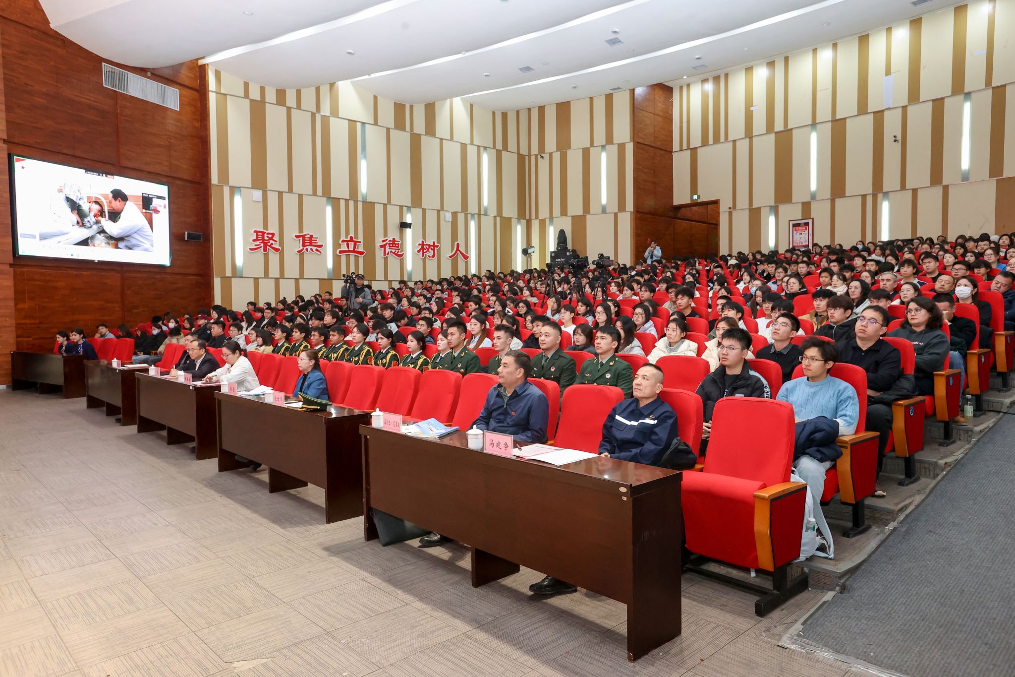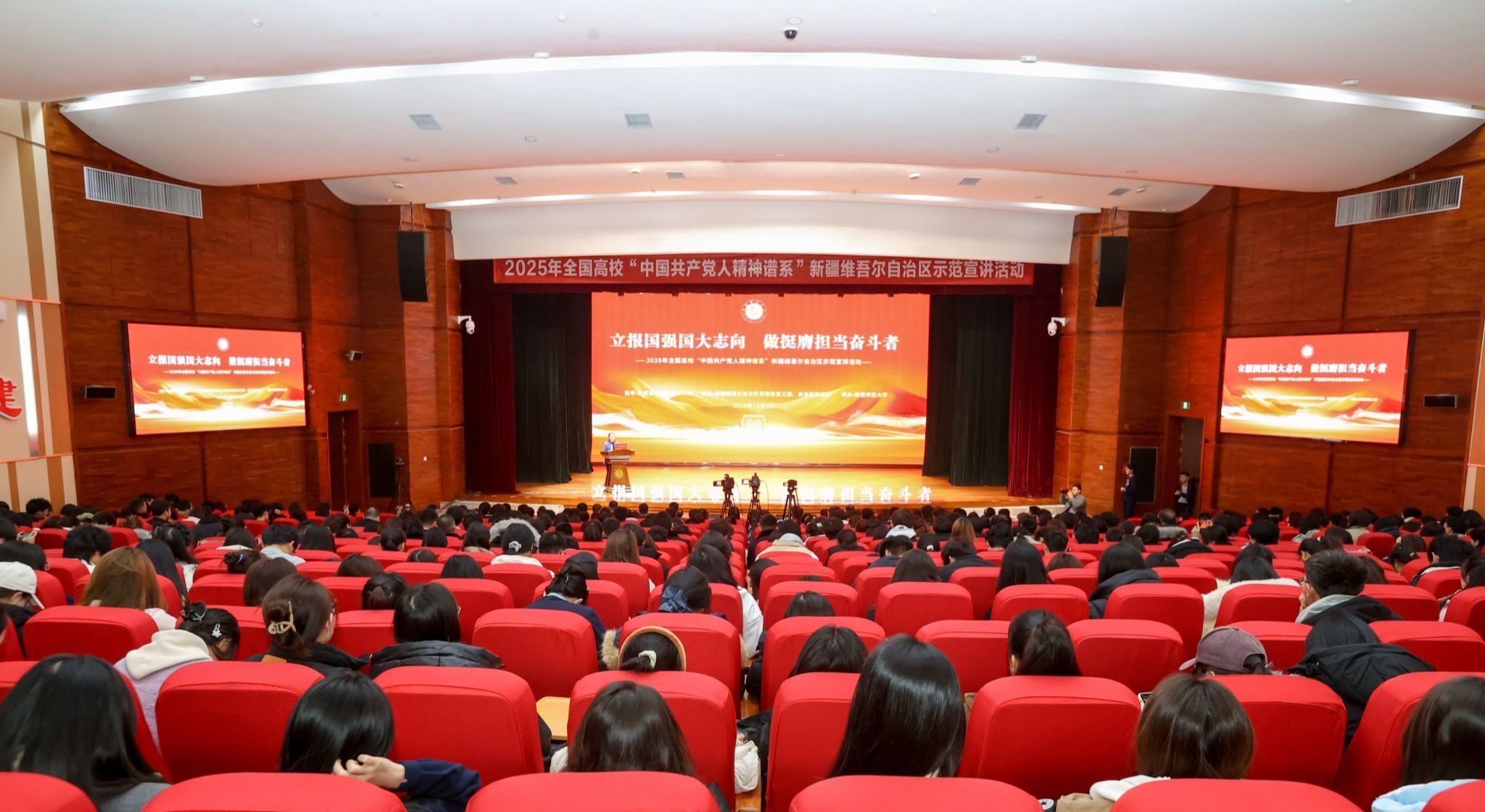 12月4日,2025年全国高校“中国共产党人精神谱系”新疆维吾尔自治区示范宣讲活动在我校温泉校区昆仑讲堂举行。活动以“立报国强国大志向,做挺膺担当奋斗者”为主题,采取“线下主会场+线上分会场”的形式开展,乌鲁木齐市高校师生代表及我校退役大学生协会、国旗班和各学院学生代表共580余人在主会场参加活动,全区各高校师生同步以视频方式在线聆听宣讲。