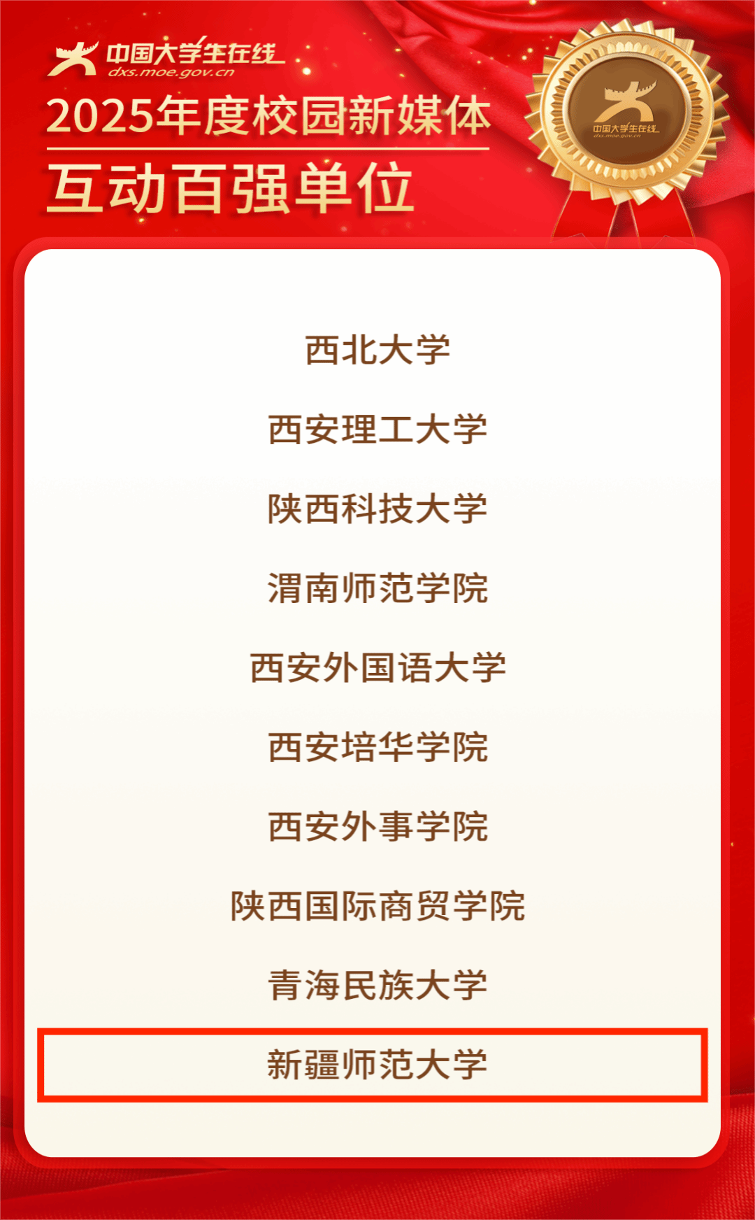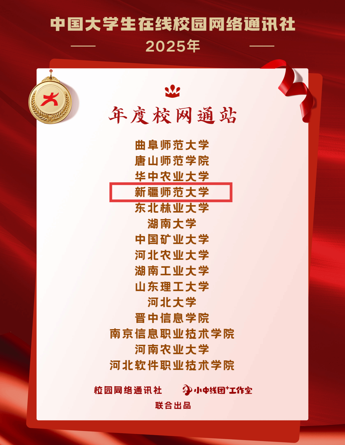 此次获奖的新疆师范大学校园网络通讯站由党委学生工作部建设运营。该站在中国大学生在线与学校党委的共同指导下,秉持“学生为主体,教师为引导,师生共建”原则,深耕校园思政教育、文化建设等领域,创作优质网络作品,深化共建合作,着力打造特色网络文化品牌。
