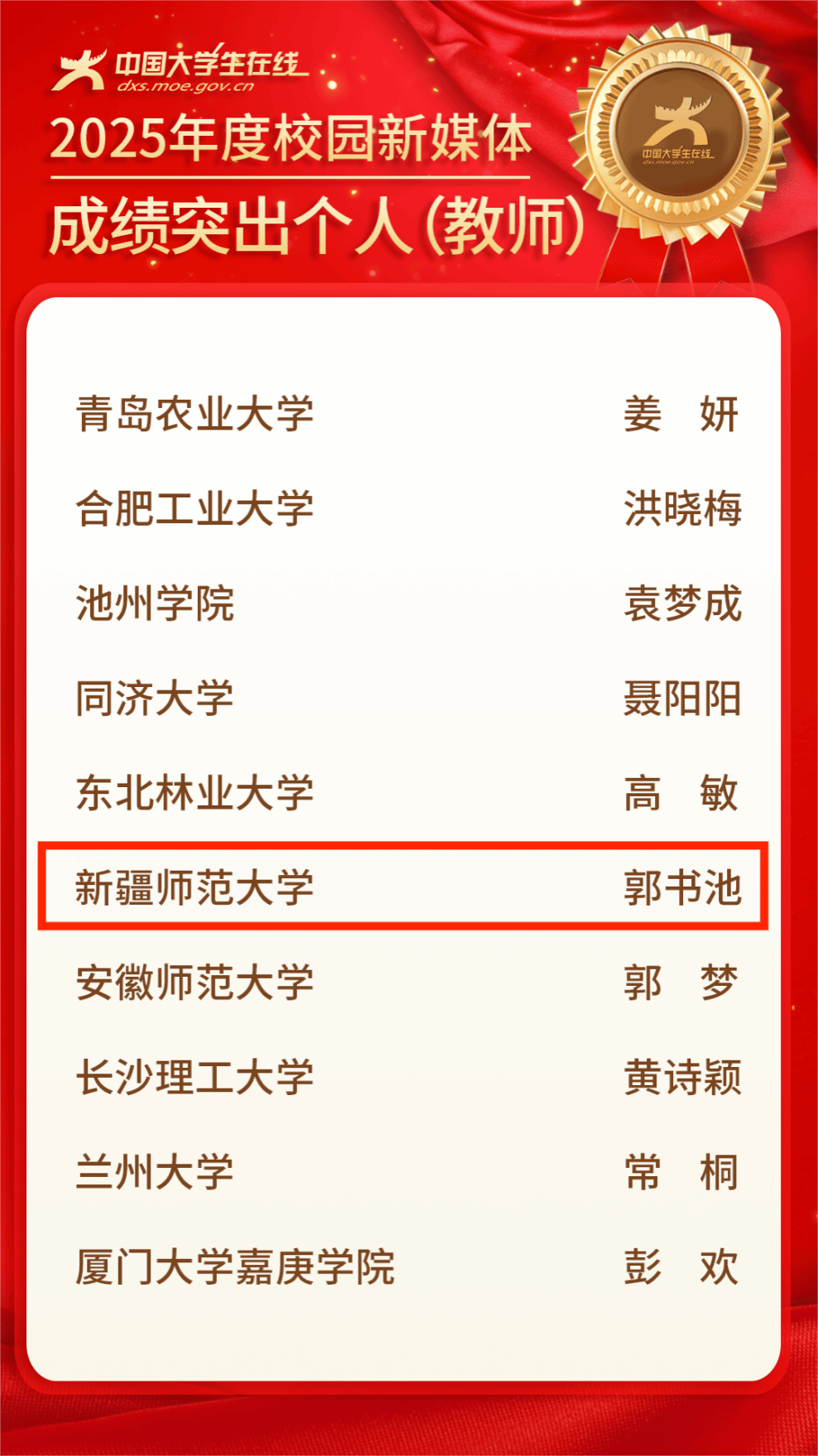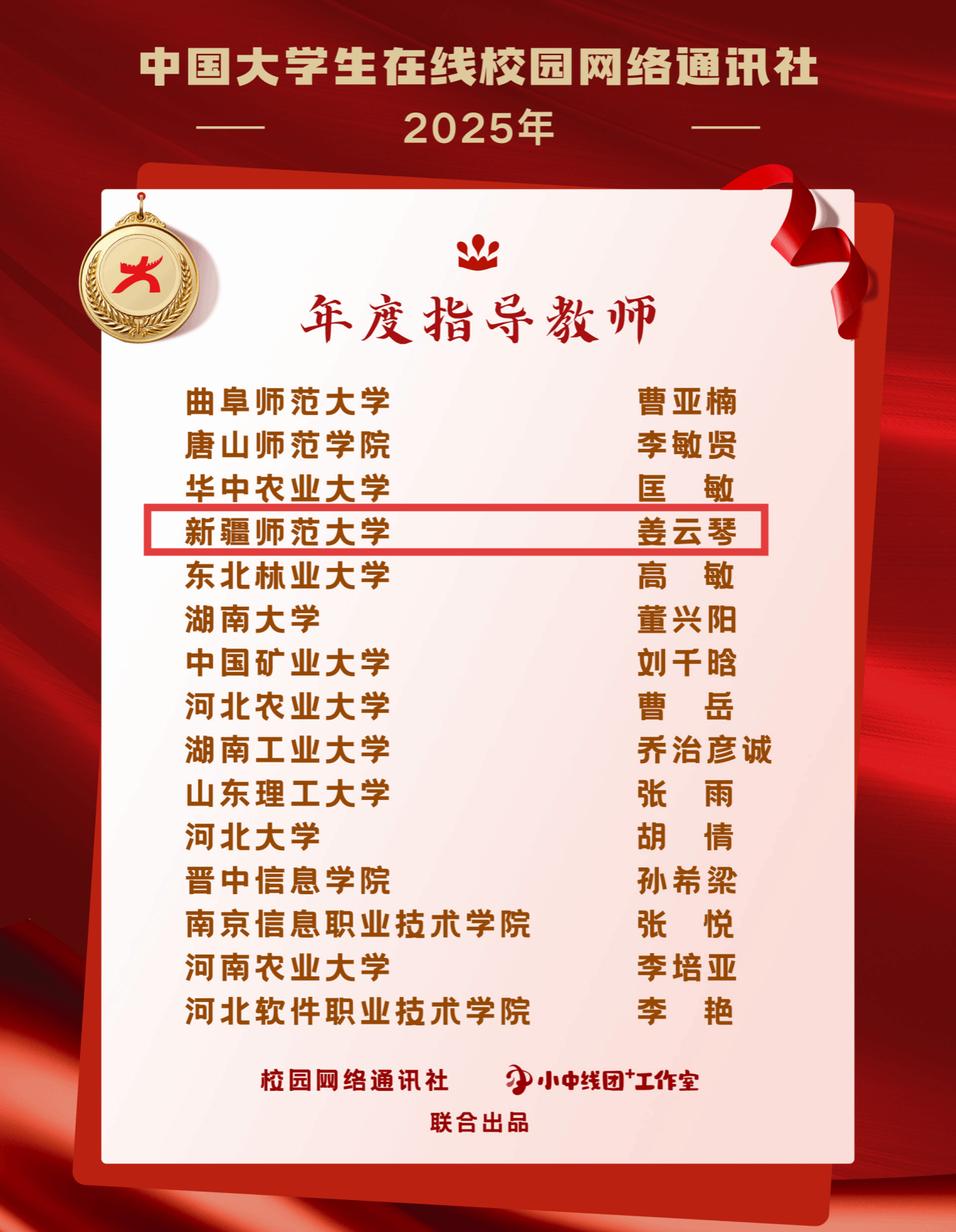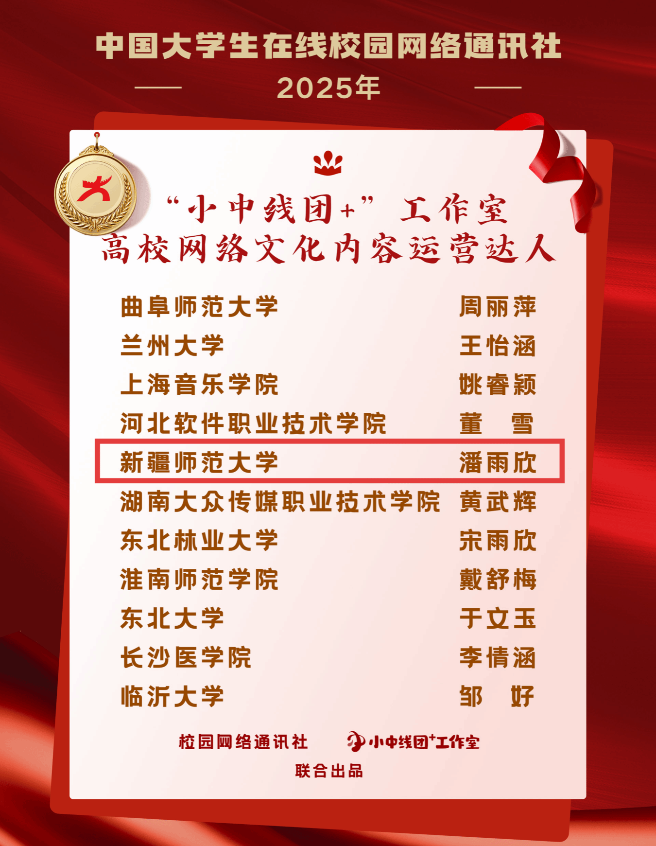 2025年度校园新媒体成绩突出个人(全国共100人获得)
