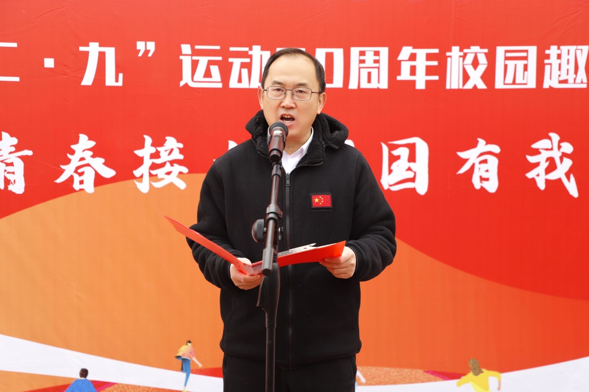 上午12时,活动在庄严的升国旗、奏唱国歌仪式中拉开序幕。刘俊在致辞中强调,“一二·九”运动展现了深厚的爱国情怀、追求真理的勇气和团结奋进的力量,是中华民族宝贵的精神财富。纪念是为了更好地传承与前行,当代师生要接过历史的接力棒,将爱国主义、追求进步、团结奋斗的精神融入实际行动。希望同学们坚定理想信念、锤炼过硬本领、注重团结互助,在奔跑中致敬历史,在奋斗中书写青春,共同跑出师大人崭新的精神气象。